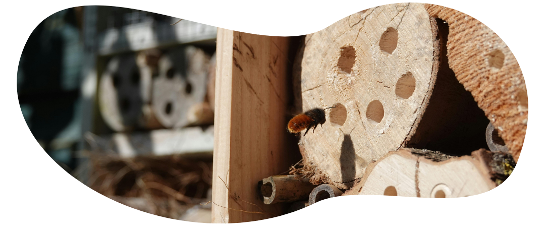 - Abejas solitarias: grandes polinizadoras, usan cañas o madera con agujeros para poner sus huevos.