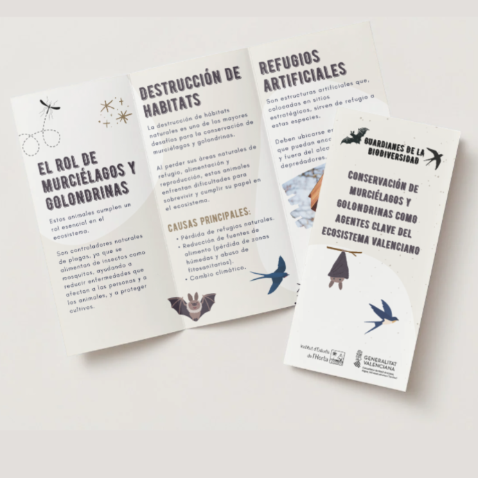 Diseño de materiales formativos y de difusión sobre el proyecto, los murciélagos, las golondrinas, los insectos beneficiosos y la protección de sus hábitats.