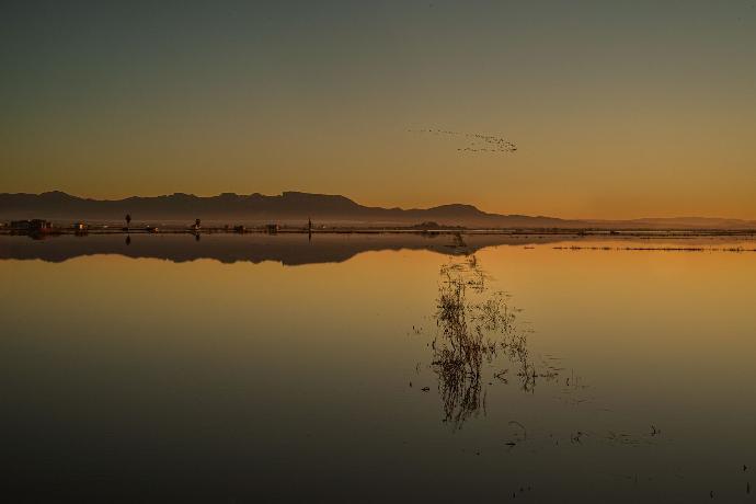 Es la sensación que puede dar este paisaje por su belleza que se desdobla y amplifica reflejándose en el agua; por su naturaleza tan efímera y cambiante ya que su luz y formas dependen del momento del día, de la estación del año y sobre todo de los cultivos. Pero, quizá lo más sorprendente es encontrar este lugar mágico a pocos Km de Valencia. Un lugar que no se esconde, pero que hay que buscar, saber reconocer y amar.