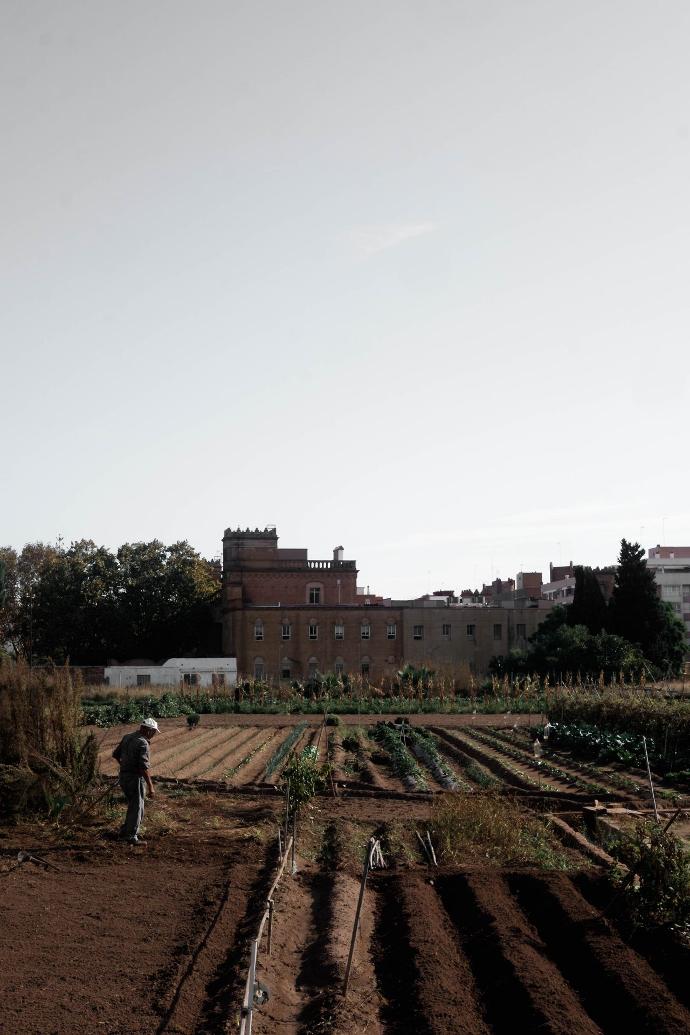 Sin embargo, aún existen casos más curiosos, como el fotografiado, en el que la ciudad ha terminado abrazando completamente una sola parcela de huerta que aún se trabaja y cultiva como tal.