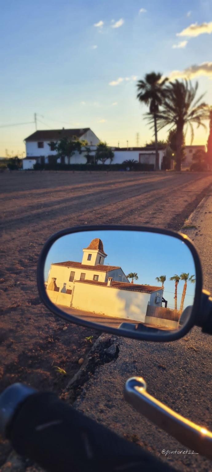 Mirada indirecta d’una de les alqueries més boniques de l’horta d’Alboraia, ubicada a la partida de Saboia. O realment mira una altra alqueria, la que té davant? I el camp ben llaurat, com un llenç per estrenar, relluïx amb la llum de la posta de sol.
