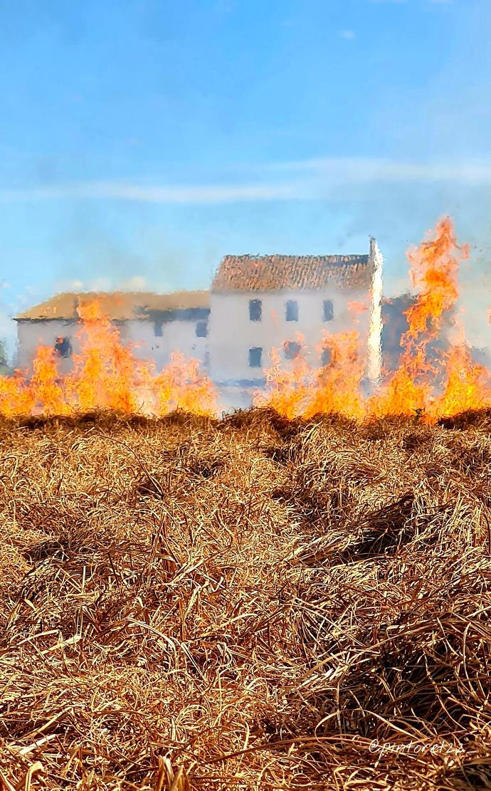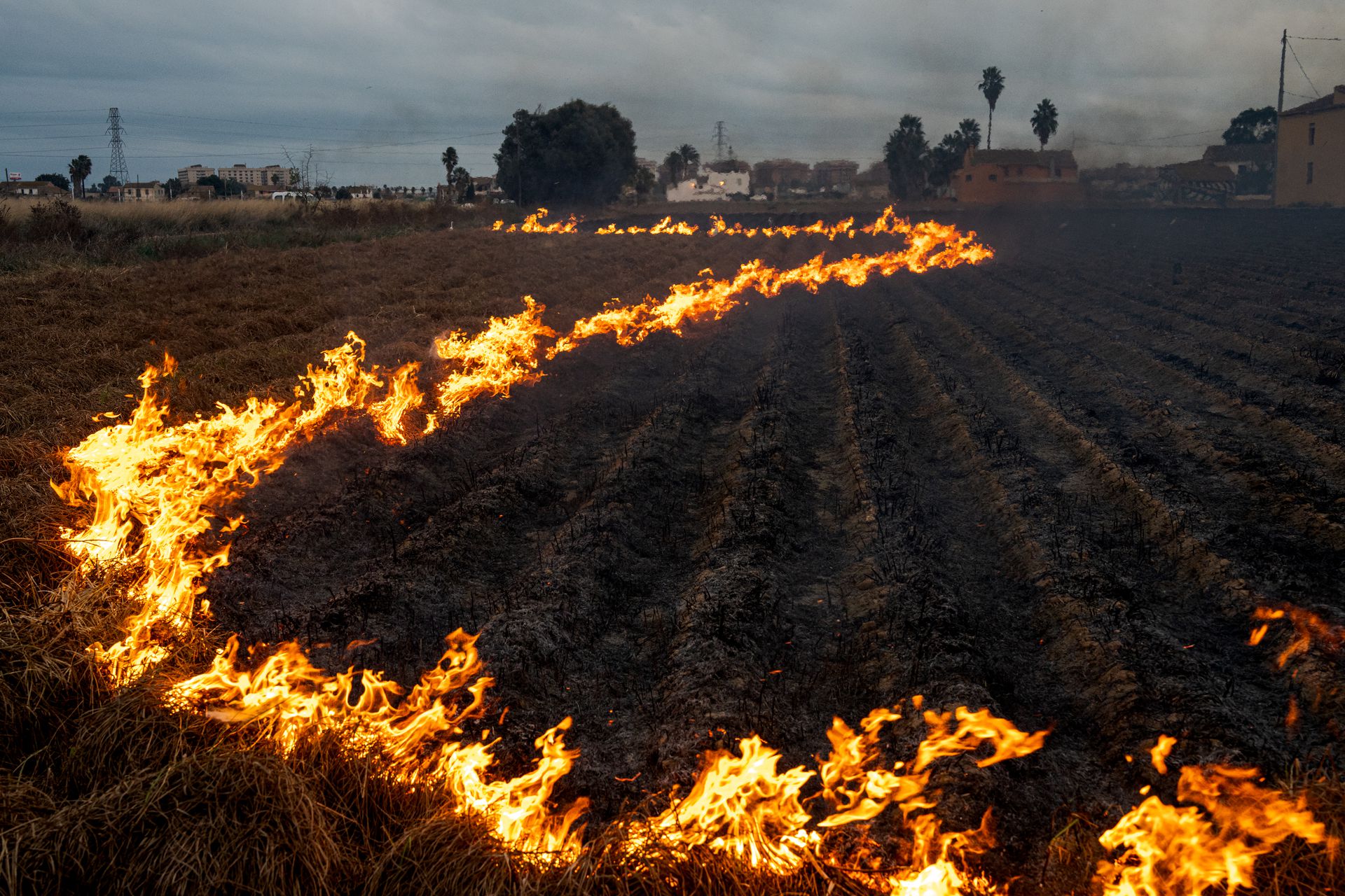 Foto tomada durante la campaña de chufa 2022/23. Durante el invierno se lleva a cabo el tradicional quemado de la paja de chufa para preparar la recogida de la chufa.