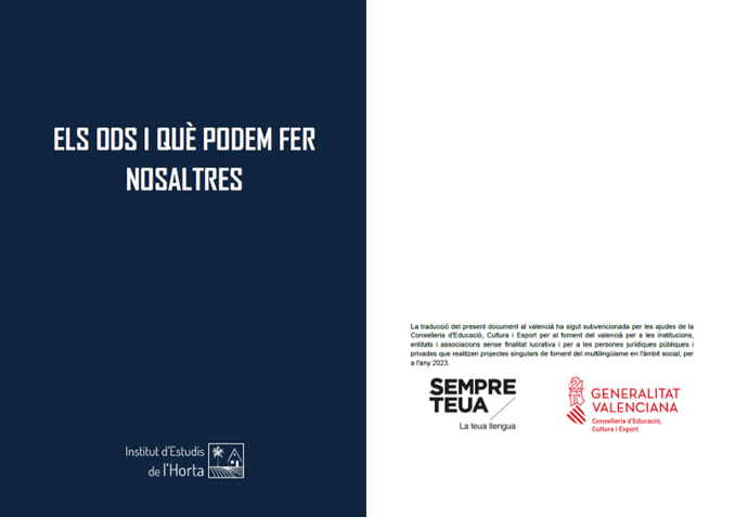 Se ha llevado a cabo la elaboración en valenciano del documento "Los ODS y qué podemos hacer nosotros para conseguirlos". Este documento se había elaborado inicialmente en castellano con el objetivo de difundir los Objetivos de Desarrollo Sostenible (ODS) y algunas opciones que puede realizar la ciudadanía para lograrlos. El documento completo, en ambas lenguas, se encuentra en el apartado Recursos de nuestra web.